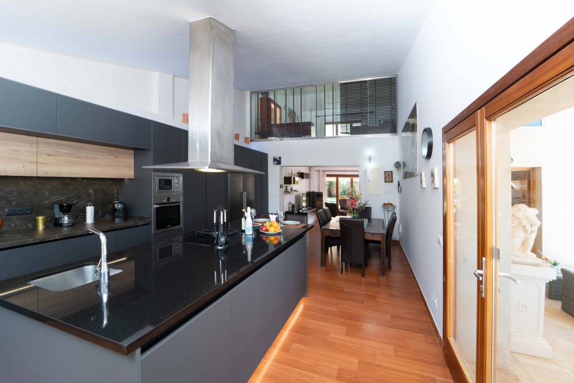 Schon beim Betreten beeindruckt die Villa mit einem offenen, lichtdurchfluteten Wohnkonzept. Die großzügige Küche mit Kochinsel ist hochwertig ausgestattet und geht fließend in den Ess- und Wohnbereich über. Von hier aus gelangen Sie direkt auf die Terrasse – perfekt für gemeinsame Mahlzeiten und entspannte Abende.