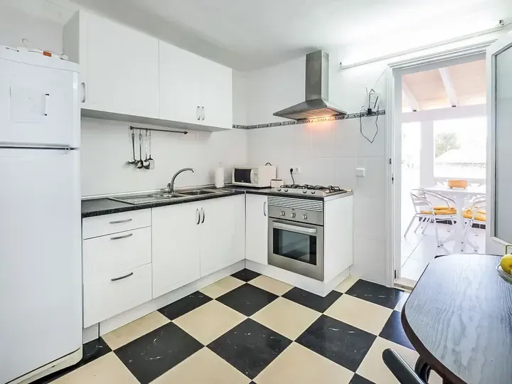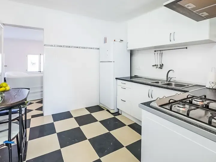 Einkaufsgeschäft 1.8 km, Supermarkt 1.7 km, Restaurant 800 m, Bar, Zentrum zu Fuß in 20 Minuten erreichbar, Bushaltestelle 1.5 km, Sandstrand “Playa de Sa Marina” 100 m, Felsstrand 10 m. Sporthafen 2 km, Golfplatz (18 Loch) 6 km. Bitte beachten: kein Fahrstuhl vorhanden.