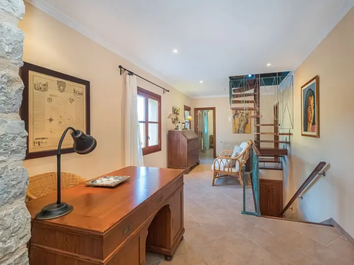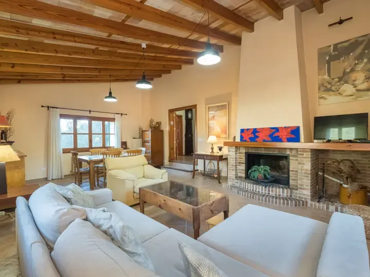 Auf 175 m² Wohnfläche erwartet Sie eine gelungene Mischung aus mallorquinischem Charme und modernem Komfort. Die Räume sind geschmackvoll eingerichtet, mit Naturmaterialien, traditionellen Holzbalkendecken und stilvollen Details.