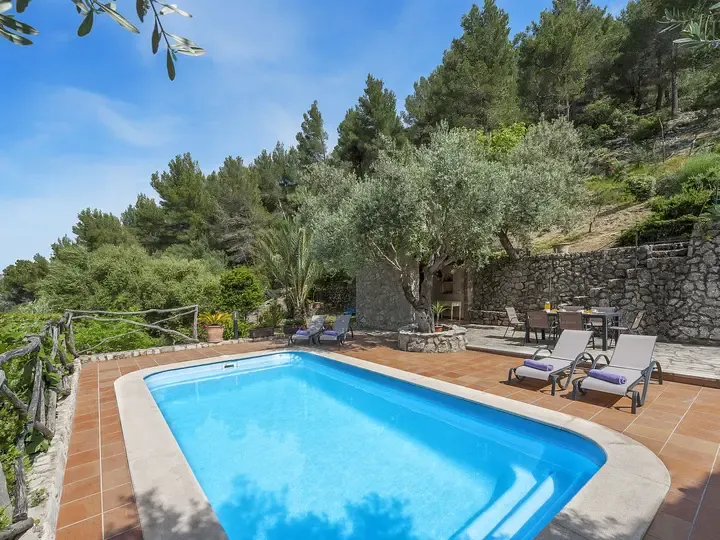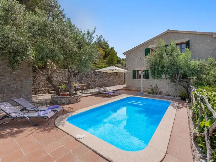 Die freistehende, zweistöckige Natursteinfinca eignet sich ideal für Familien, Paare oder Freunde – bis zu 8 Personen finden hier großzügig Platz. Nur wenige Kilometer von Caimari entfernt, liegt das Haus auf einer Anhöhe auf 350 m ü. M. – perfekt, um die Seele baumeln zu lassen, in den Pool zu springen oder Wanderungen direkt vor der Haustür zu starten.