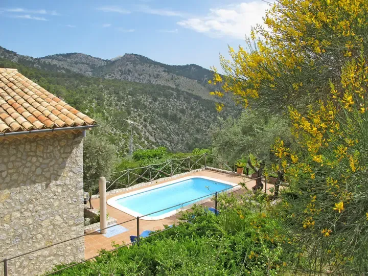 Der gepflegte Außenbereich der Finca ist ein Traum für Natur- und Ruhesuchende. Die große Terrasse mit gemütlichen Sitzgelegenheiten und Grill lädt zu langen Abenden unter freiem Himmel ein. Entspannen Sie auf den Sonnenliegen, nehmen Sie ein erfrischendes Bad im privaten Pool (6 x 3 m) oder genießen Sie einfach den Blick auf die beeindruckende Gebirgskulisse.