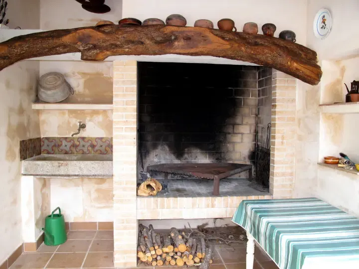 Im Wohn-/Essbereich mit offenem Kamin, Esstisch, SAT-TV und Klimaanlage lässt es sich gemütlich entspannen. Die gut ausgestattete Küche mit fünf Kochfeldern, Backofen, Geschirrspüler, Mikrowelle, Kaffeemaschine und zusätzlichem Kamin ist perfekt für gesellige Kochabende – und der direkte Zugang zur Terrasse macht das Frühstück im Freien zum täglichen Highlight.