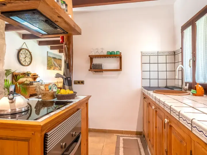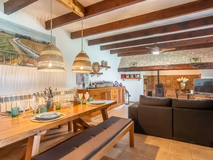 Das stilvoll im Landhausstil eingerichtete Ferienhaus besteht aus einem Haupt- und einem Nebengebäude – perfekt für Gäste, die gemeinsam reisen und doch Privatsphäre genießen möchten. Die Räume sind mit viel Naturholz, liebevollen Details und hochwertigen Materialien gestaltet und strahlen ein behagliches, mediterranes Ambiente aus.