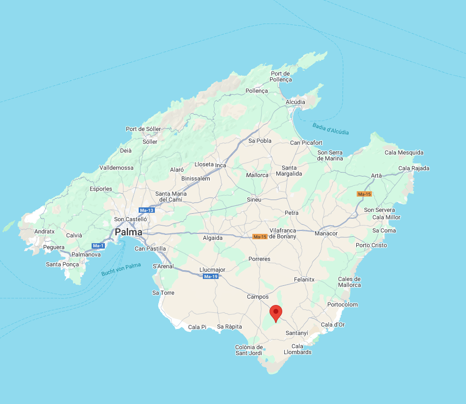 Sa Caseta liegt eingebettet in die friedliche Landschaft des Südens – nur 6 km vom charmanten Ort Ses Salines entfernt, bekannt für seine guten Restaurants, Wochenmärkte und seine Nähe zu den schönsten Stränden der Insel. Der naturbelassene Sandstrand Es Trenc, das glasklare Wasser von Cala Santanyí oder das romantische Es Caló des Moro sind in wenigen Autominuten erreichbar. Auch der beliebte Küstenort Colònia de Sant Jordi, das künstlerisch geprägte Santanyí und das Wanderparadies der Serra de Tramuntana sind nicht weit.