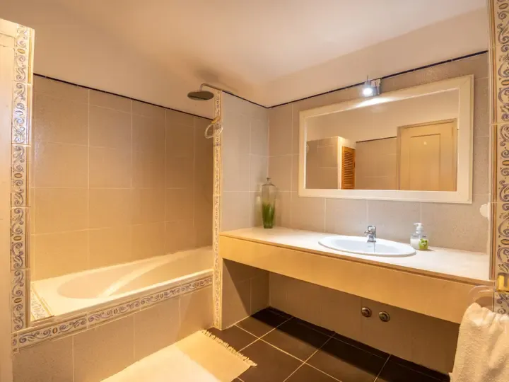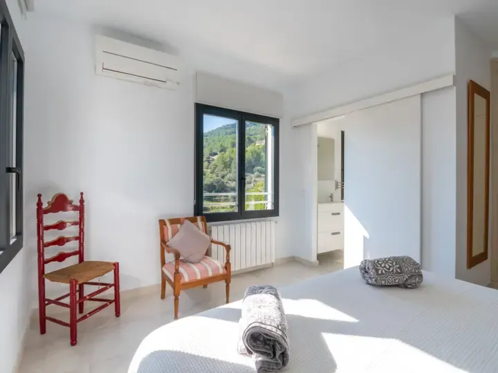 Auf rund 160 m² Wohnfläche bietet die Finca Platz für bis zu 8 Gäste – perfekt für Familien, befreundete Paare oder kleinere Gruppen. Die Räume sind geschmackvoll eingerichtet, mit einer gelungenen Mischung aus traditionellen Elementen (Natursteinwände, Holzbalken, Kamin) und modernen Annehmlichkeiten.
