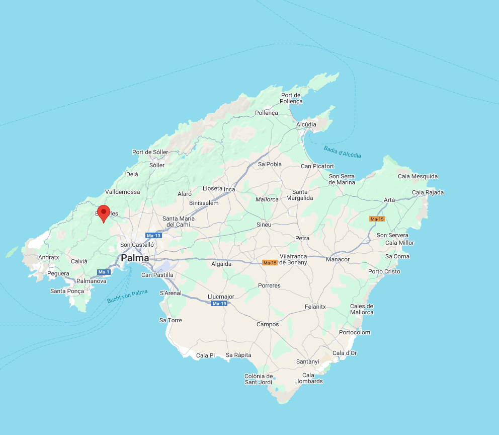 - Palma de Mallorca (Zentrum): ca. 26 km / 20 Autominuten
