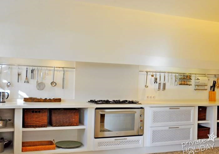 Die moderne Küche verfügt über alle nötigen Küchengeräte und Utensilien. Außer im Wohnzimmer kann auch im extra Esszimmer oder auf den zwei überdachten Terrassen ein gemeinsames Mahl verzehrt werden.