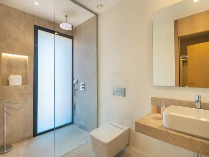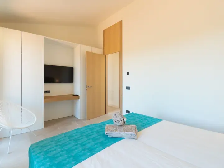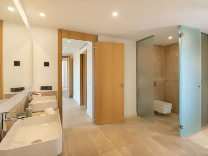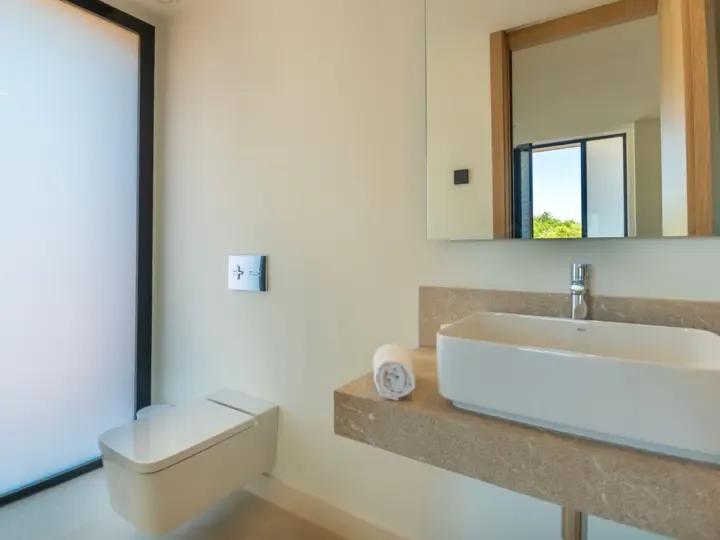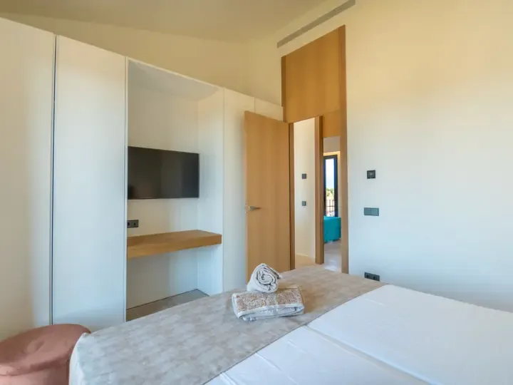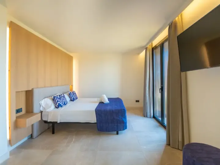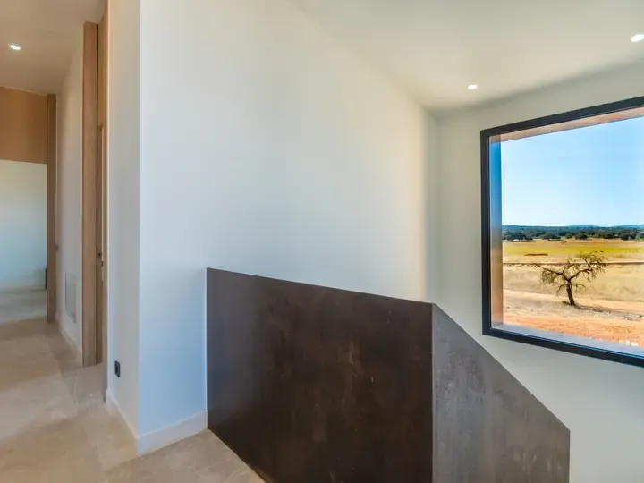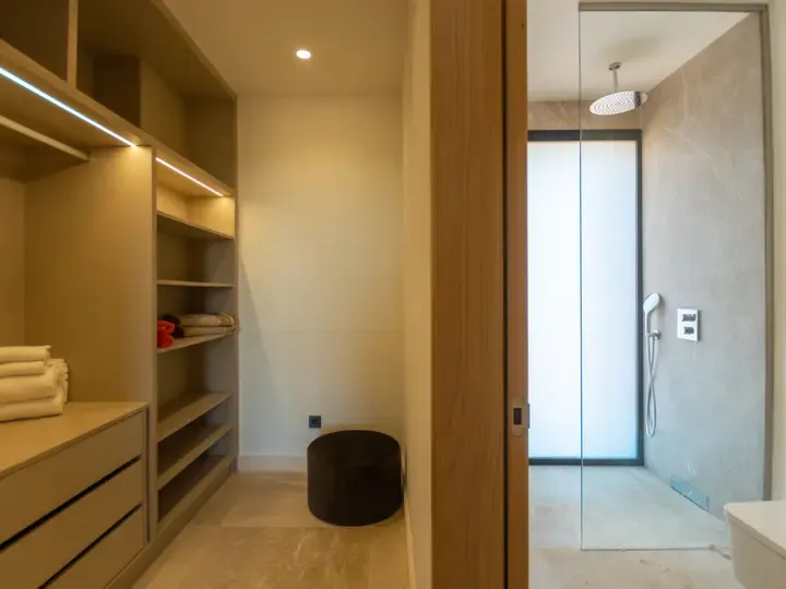 Die Villa Can Navarro wurde modern eingerichtet und bietet ein großzügiges Raumgefühl. Das lichtdurchflutete Wohn-/Esszimmer lädt zum Verweilen ein, während die offene Küche mit Kochinsel den idealen Platz für gemeinsame Mahlzeiten bietet. Die Schlafzimmer verfügen über Panoramafenster, begehbare Kleiderschränke und moderne Bäder – teilweise mit Hydromassage-Dusche. Jedes Zimmer ist klimatisiert und sorgt auch in den Sommermonaten für angenehme Temperaturen.