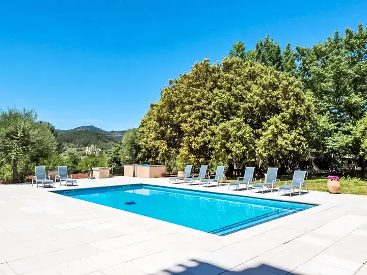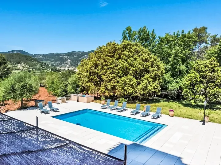 Auf einem großen privaten Grundstück gelegen, ist die Villa Les Mines ein echtes Refugium mit Panoramablick auf die Berge und die umliegende Landschaft. Das Ferienhaus beeindruckt mit 7 stilvoll eingerichteten Schlafzimmern, 6 Bädern, mehreren Wohnbereichen, einem großen Garten, einer überdachten Terrasse und einem privaten Pool mit Liegeflächen – all das inmitten mediterraner Natur.