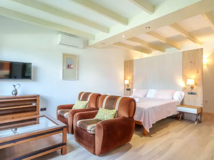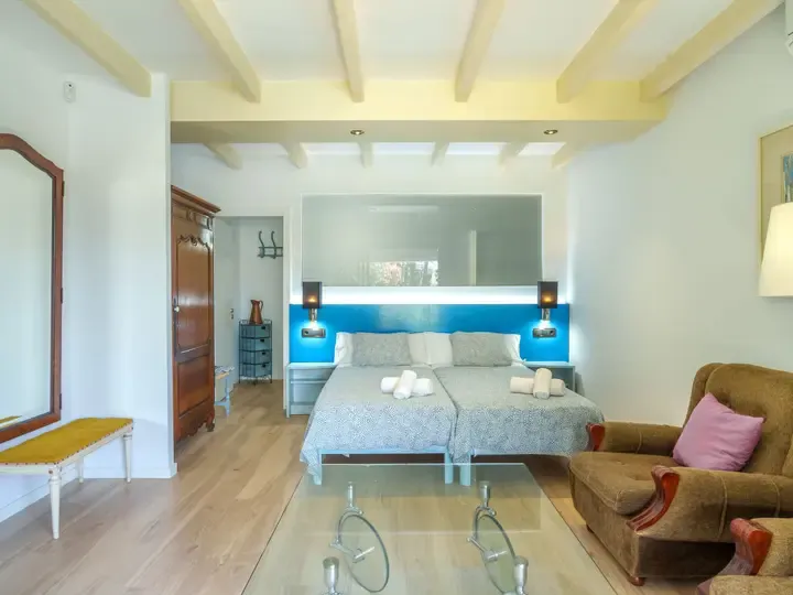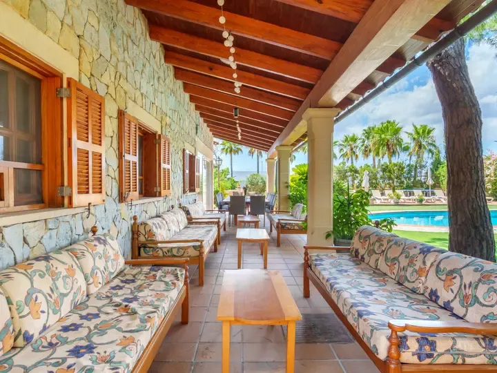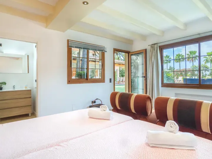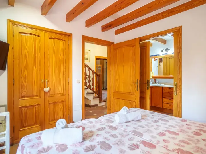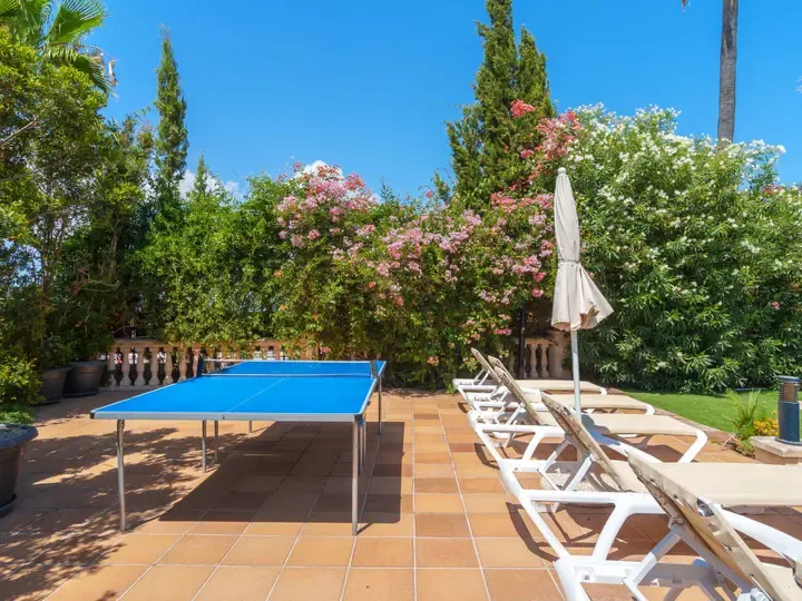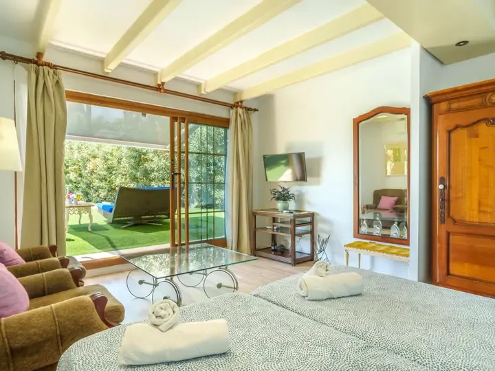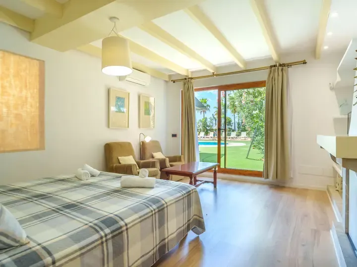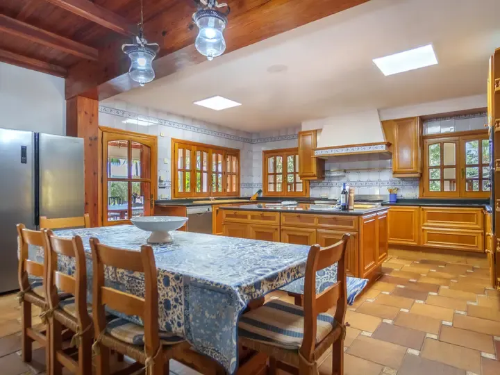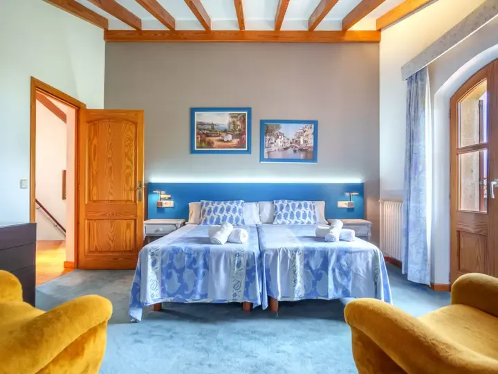 In der Villa Marjals finden Sie acht komfortable Schlafzimmer, jeweils mit eigenem Bad, Smart-TV und Klimaanlage. Die Einrichtung verbindet mallorquinische Gemütlichkeit mit modernen Elementen – lichtdurchflutet, hochwertig und warm. Zwei großzügige Wohnzimmer, ein zentraler Essbereich und eine voll ausgestattete Küche mit Kochinsel bieten Raum für entspannte Stunden – ob beim Kochen, Spielen oder gemeinsamen Genießen.